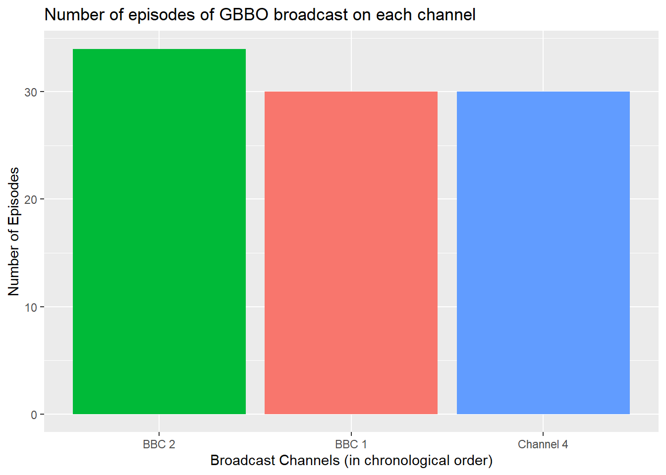 labs(title="Number of episodes of GBBO broadcast on each channel")+ # adds a plot title